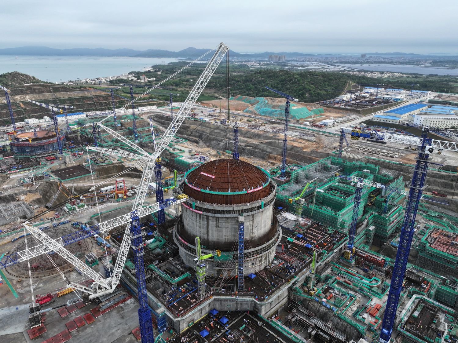 4月29日8時(shí)8分,中廣核陸豐核電5號(hào)機(jī)組穹頂高質(zhì)量完成吊裝,標(biāo)志著該臺(tái)“華龍一號(hào)”核電機(jī)組從土建施工階段全面轉(zhuǎn)入設(shè)備安裝階段。