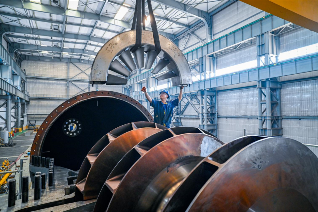 中綠中科儲能技術(shù)有限公司與沈鼓集團(tuán)緊密合作,共同攻克技術(shù)難題,成功開發(fā)了世界首臺套超大型離心式空氣壓縮機(jī)組,其葉輪直徑達(dá)到2米,整機(jī)重量相當(dāng)于五十頭成年大象的重量總和,是世界上最大規(guī)模的水平剖分離心壓縮機(jī)。