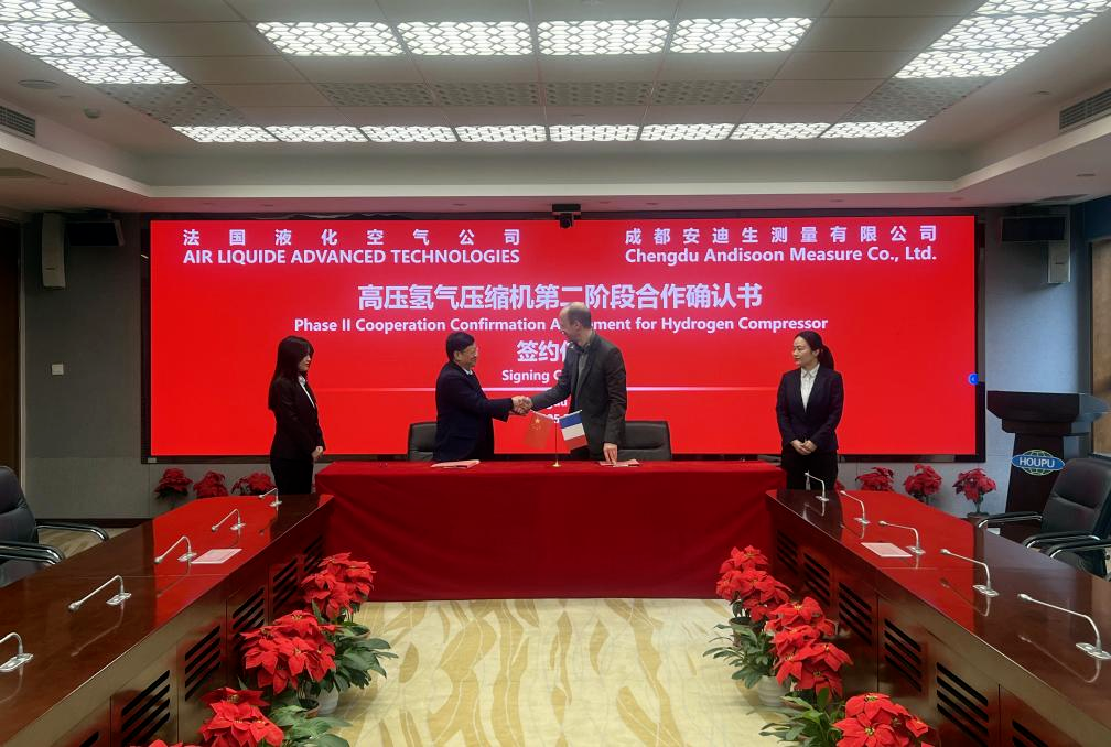 近日,法國液化空氣集團(簡稱:液化空氣)與厚普股份全資子公司成都安迪生測量有限公司(簡稱:安迪生)簽署合作確認(rèn)書,正式啟動高壓氫氣液驅(qū)壓縮機研發(fā)項目第二階段合作。此次合作依托“國際研發(fā)+中國智造”協(xié)同模式,由液化空氣提供領(lǐng)先技術(shù)方案,安迪生負(fù)責(zé)產(chǎn)業(yè)化推進(jìn)。此舉標(biāo)志著雙方在氫能高端裝備領(lǐng)域的合作進(jìn)入加速新階段。