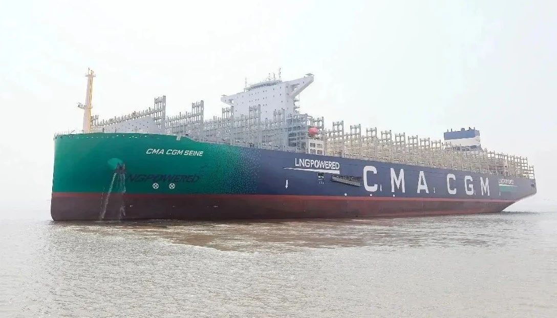 該船是法國達飛集團在滬東中華訂造的4艘24000TEU級雙燃料動力集裝箱船系列的首制船,也是滬東中華繼2020年9月完工交付的全球首創(chuàng)23000TEU雙燃料動力集裝箱船的升級優(yōu)化型綠色環(huán)保超大型集裝箱船。該船總長399米,型寬61.3米,型深33.5米,設(shè)計吃水14.5米,可承載22萬噸貨物,可一次裝下23872個集裝箱,其中包括2200個標準冷藏集裝箱,最大堆箱層數(shù)達24層,相當于22層樓高度,是新一代海上“綠巨人”和“帶貨王”。