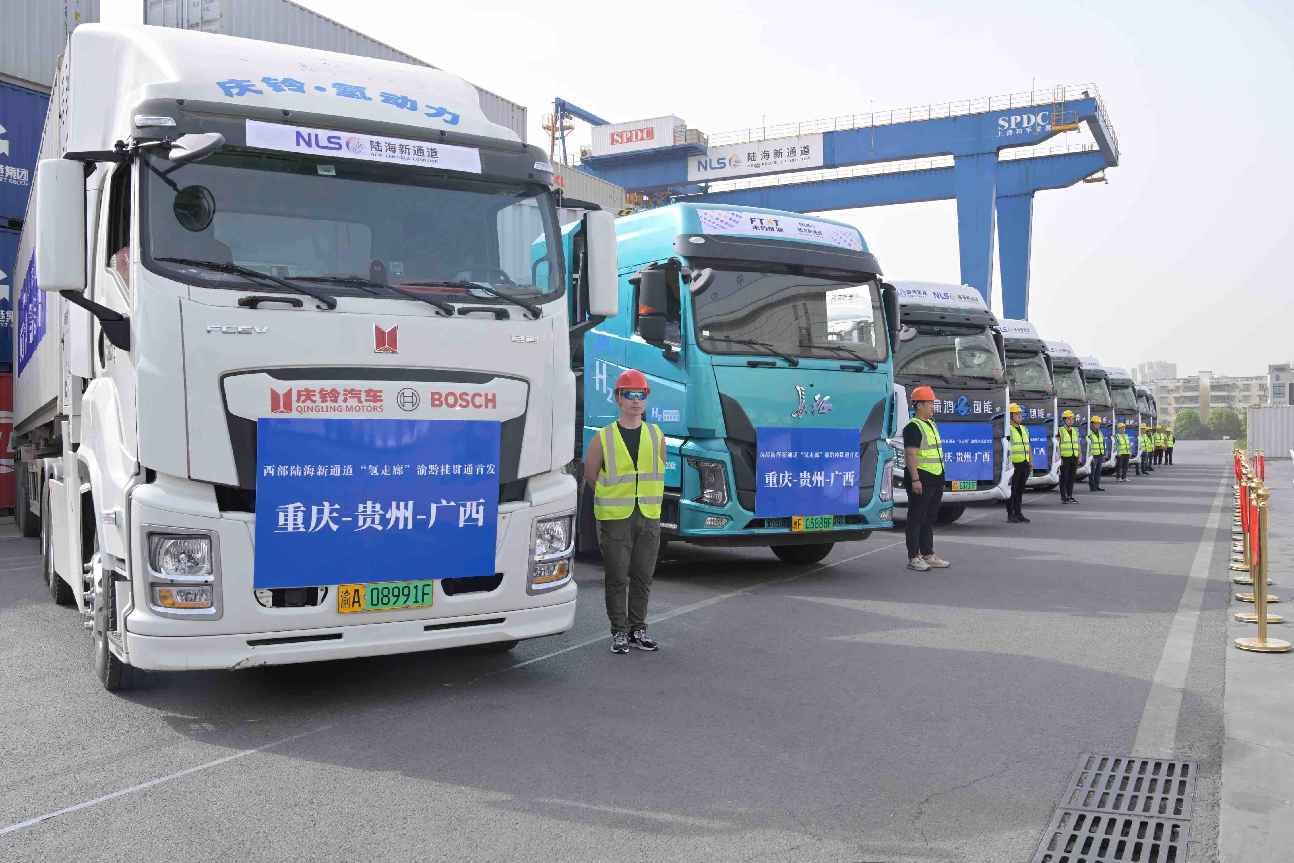 4月14日上午,10輛滿載化工品、筆記本電腦、汽車配件等貨物的氫能重卡在中國石化重慶石油趕水加氫站加氫后啟程,途經(jīng)貴州,最終將抵達(dá)廣西欽州港出海,標(biāo)志著我國首條跨區(qū)域氫能重卡干線正式貫通,并將進(jìn)入常態(tài)化運營階段。此條“氫走廊”全程約1150公里,中途設(shè)有4座加氫站,將帶動重慶、貴州、廣西周邊中短途支線物流應(yīng)用場景,是我國西部地區(qū)氫能產(chǎn)業(yè)發(fā)展邁出的重要一步,對加快建設(shè)經(jīng)濟(jì)、高效、便捷、綠色、安全的西部陸海新通道具有重要意義。